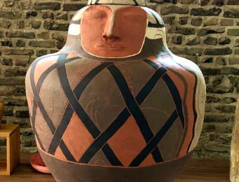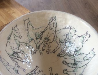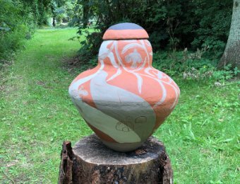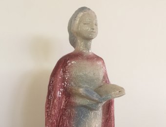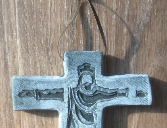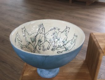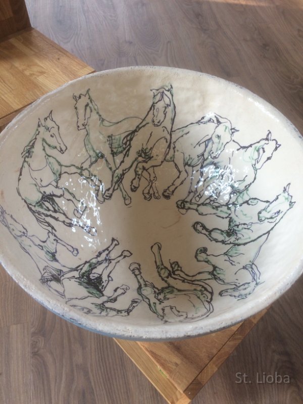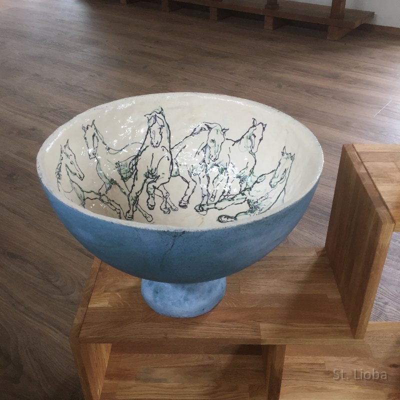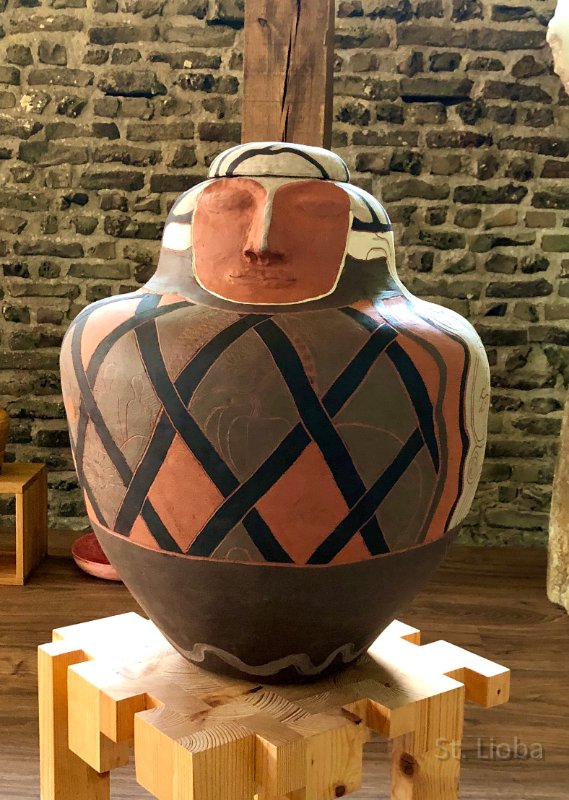 Kruisje, keramiek. 18cm. portret, keramiek, in opdracht ook op bestelling te maken. Schaal met losse voet.Hoogte 25cm, doorsnede 50 cm. Binnenzijde schaal. Doorsnede 50 cm. Hoogte 25 cm. pot met deksel, keramiek, 25 cm Vaas.Hoogte 30 cm. pot met deksel, keramiek, 35 cm open pot met deksel, keramiek, 30 cm kandelaar, keramiek, 40 cm Doopvont keramiek, 90 cm schaal, keramiek, 30 cm Liobabeeld. Keramiek.70 cm. Ongeglazuurd Liobabeeld. Keramiek.70 cm. Geglazuurd in rood, blauw, groen Halfronde schaal.Doorsnede 50 cm. Keramiek vazen, 55 cm doorsnee vessel, scheppingsverhaal, keramiek, 60 cm. vessel, scheppingsverhaal, keramiek, 60 cm. Urn met deksel, keramiek Urn zonder deksel, keramiek keramiek, pot met deksel, urn 40 cm