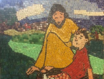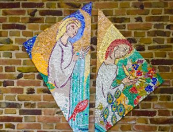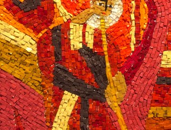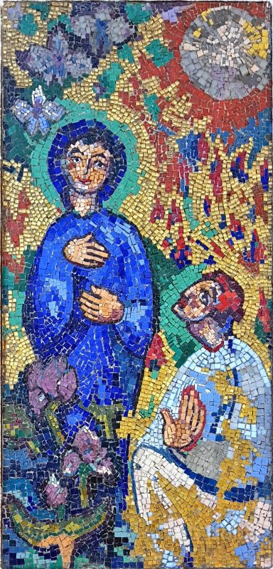 Mozaïek Annunciatie 80-150 cm Mozaïek, engel van de verrijzenis,60 cm - 120 cm Mozaïek Hooglied 80- 120 cm MozaïekVogel 40 cm - 75 cm Mozaïek, Opgewekte zoon, 60 cm - 60 cm